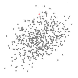 아래 그림은 처음 Gaussian distribution을 설정하고, first iteration을 진행한 모습입니다.