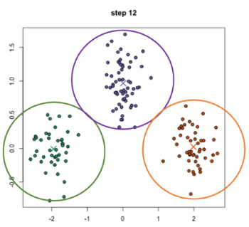 반복적으로 iteration을 진행하게 되면, 아래 그림과 같이 최적화된 clustering 형태가 구현됩니다.