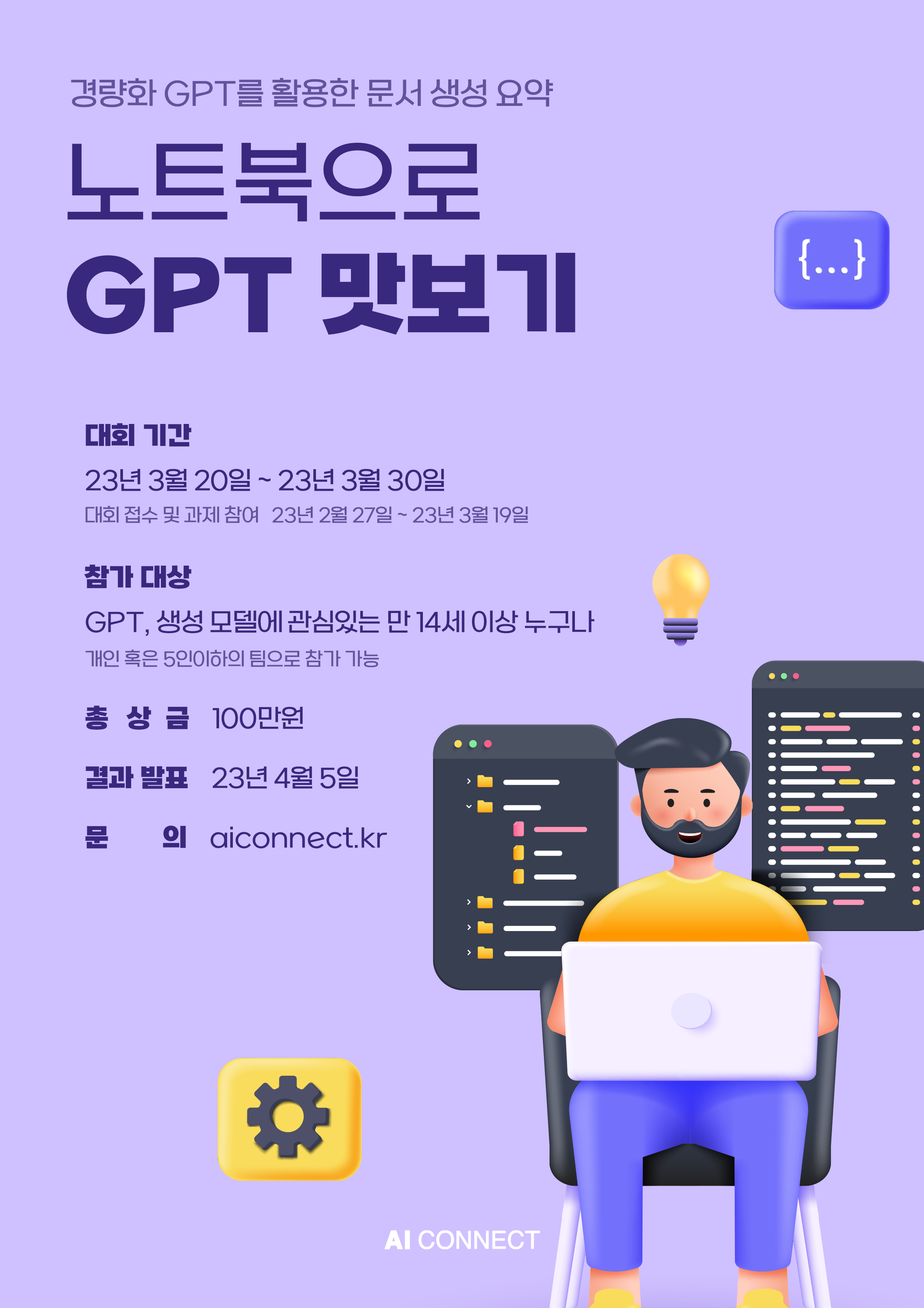 노트북으로 GPT 맛보기 - 경량화 GPT를 활용한 문서 생성요약 대회에 여러분을 초대합니다 🖥️